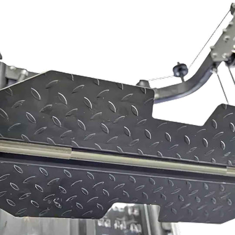 The removable low row footplate offers a textured, anti-slip surface to ensure secure footing and added stability during seated or low-position exercises.