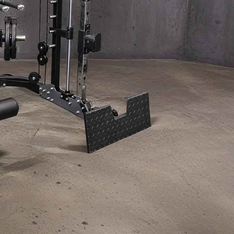 The leg press attachment leverages 14 starting height positions and built-in safety stoppers for safe, efficient lower-body training.